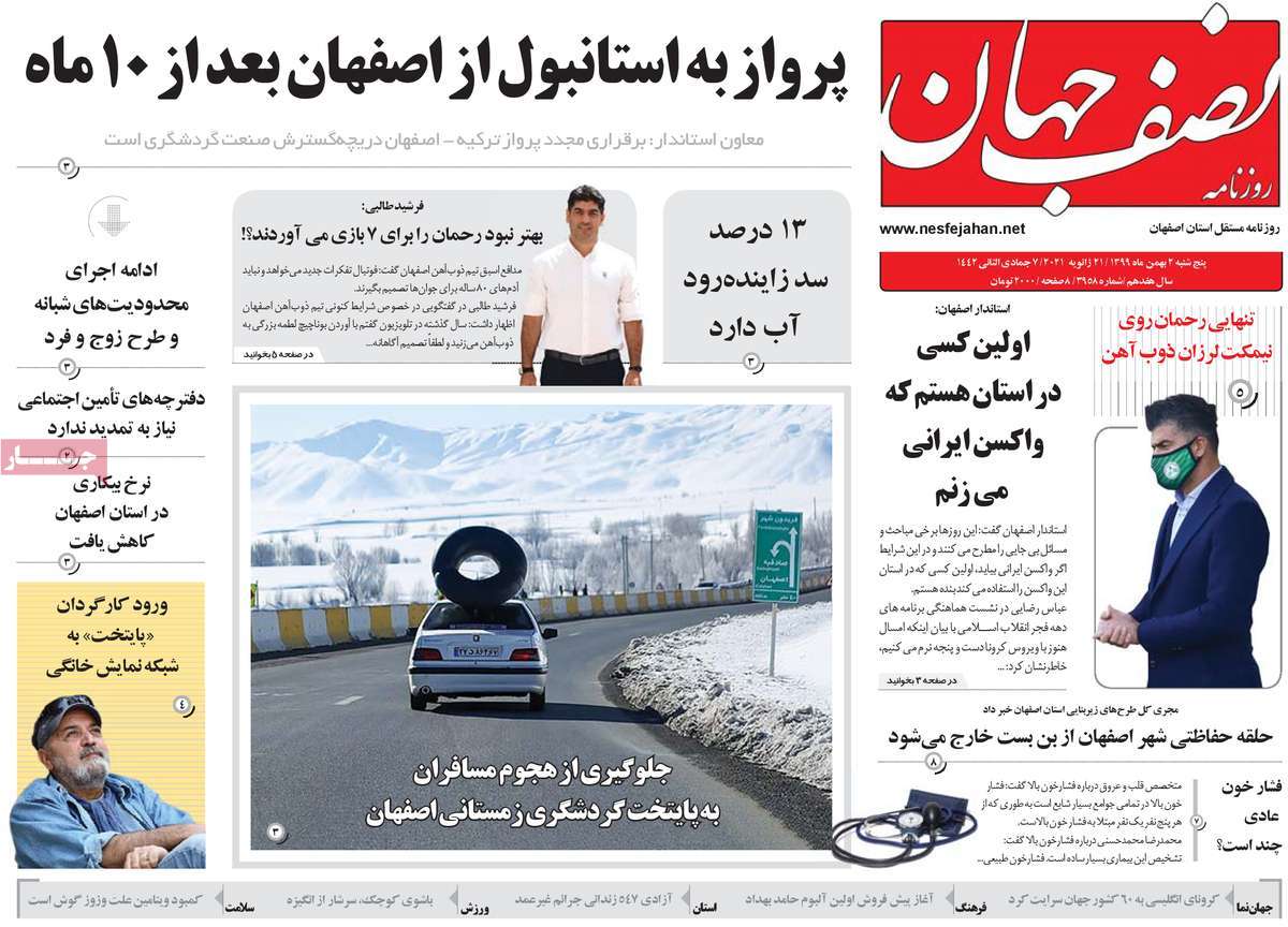 صفحه نخست روزنامههای امروز اصفهان پنجشنبه 2 بهمن 99