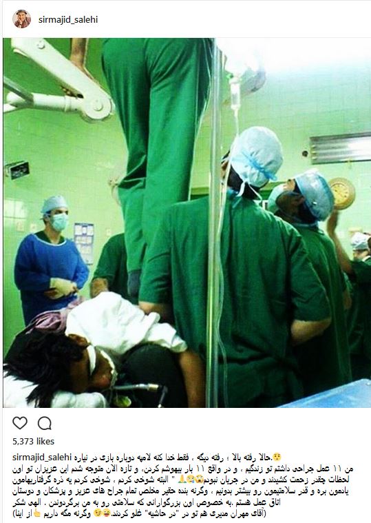 مجید صالحی بازیگر و کمدین کشور با انتشار عکس جالبی از پرسنل اتاق عمل و حرکت عجیب آنان با بیمار ، پستی طنز گونه منتشر کرد.