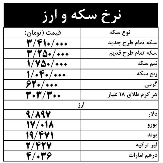 اطلاعات بیشتر در مورد آخرین قیمت های اعلام شده برای سکه، طلا و ارز در جدول زیر آمده است؛