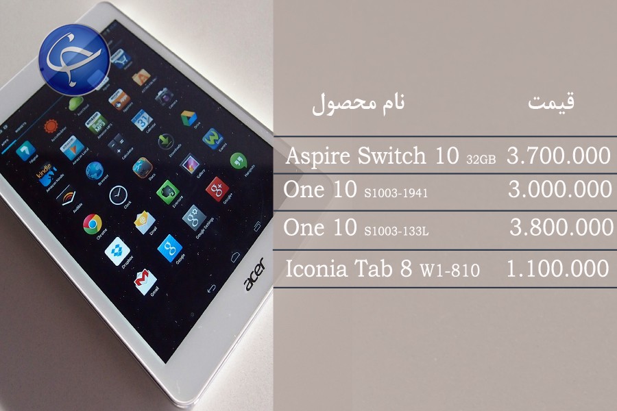 شرکت ایسر از سال ۲۰۱۰ ساخت تبلتهای خود را آغاز کرده است. این شرکت با تولید سری ایکونیا، وان ۱۰ و اسپایر در مدلهای متنوع و کیفیت مناسب توانسته نام خود را به عنوان یک تولیدکننده برتر در بازار تبلتها معرفی کند هر چند که فعلا مدلهای زیادی از ایسر در بازار یافت نمیشود. در ادامه آخرین قیمت تبلتهای شرکت ایسر در بازار را مشاهده میکنید: