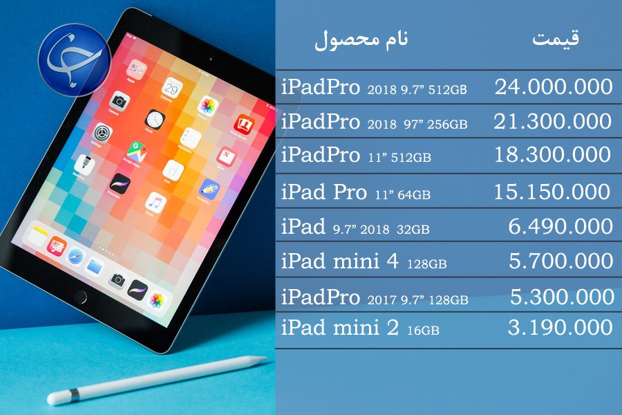 در حال حاضر تبلتهای ۲۰۱۹ اپل هنوز به بازار عرضه نشده اند و علاقهمندان میتوانند آیپد پروهای مدل ۲۰۱۸ و ۲۰۱۷ را خریداری نمایند، شرکت اپل برای حضور در بازار تبلتهای میانرده نیز سری آیپد مینی را تولید کرده که مشتریان میتوانند با هزینه کمتری این مدلها را تهیه کنند. در ادامه آخرین قیمت تبلتهای شرکت اپل در بازار را مشاهده میکنید: